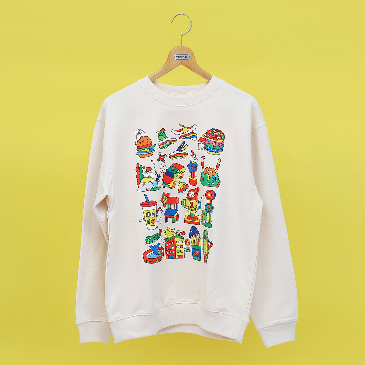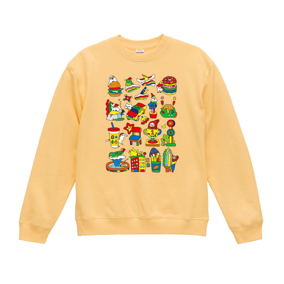 ひそもんたちがハンバーガーや、ドーナツ、車や木のうしろなど、いろんなところにひそんでいます。