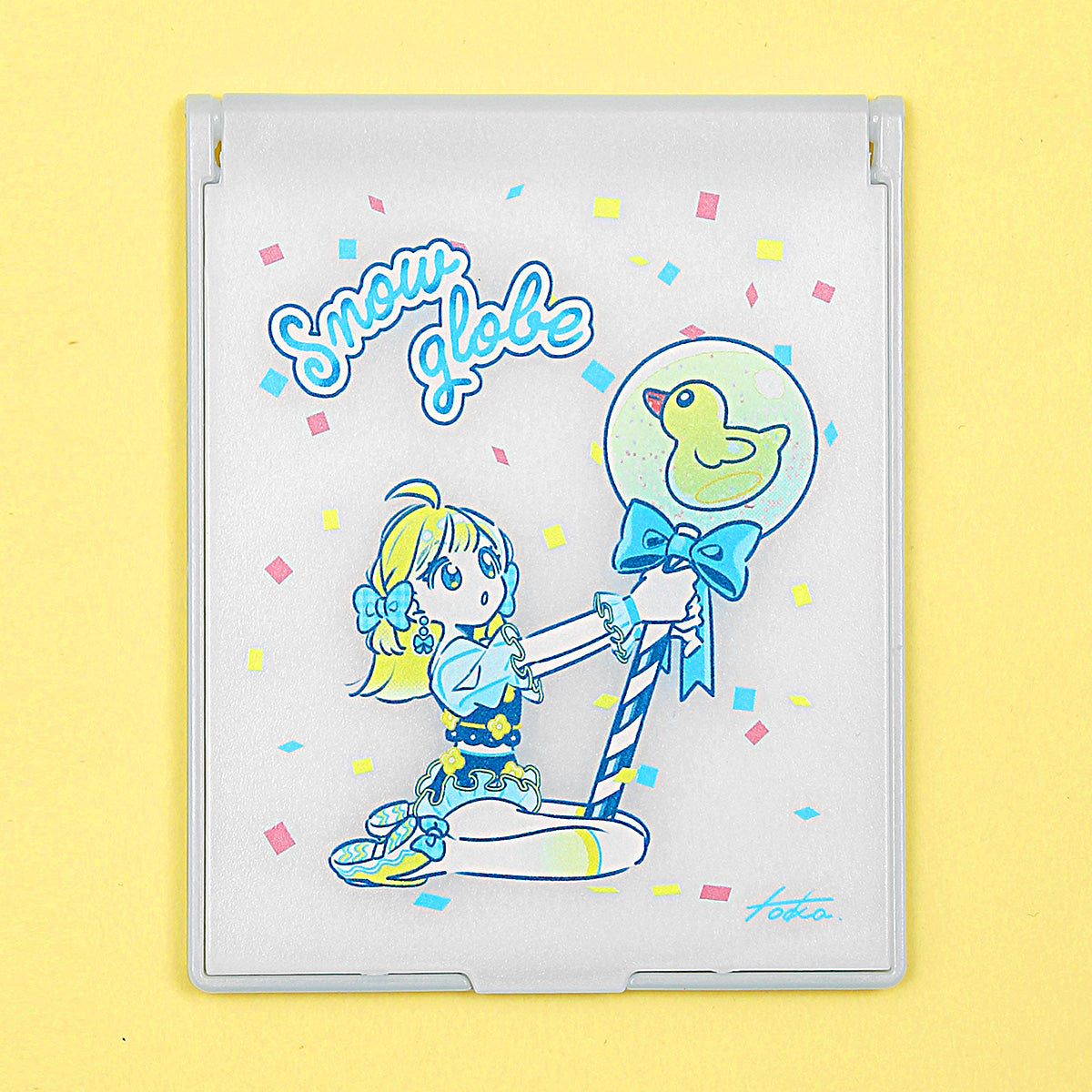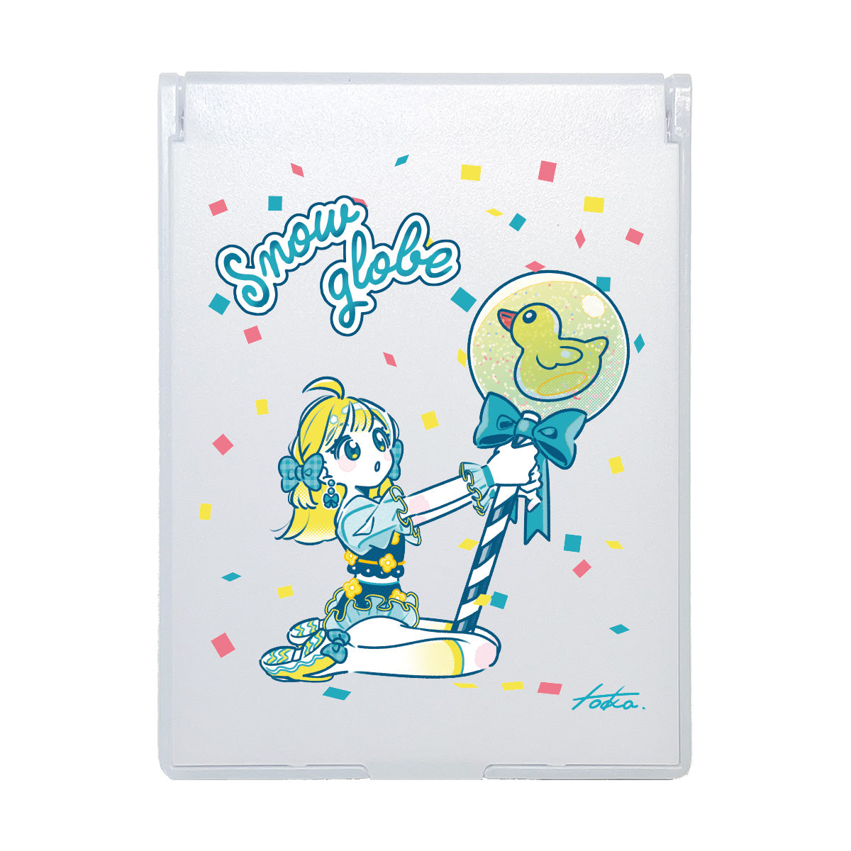 あひるのスノードームのステッキを持った女の子のファンシーなイラスト。