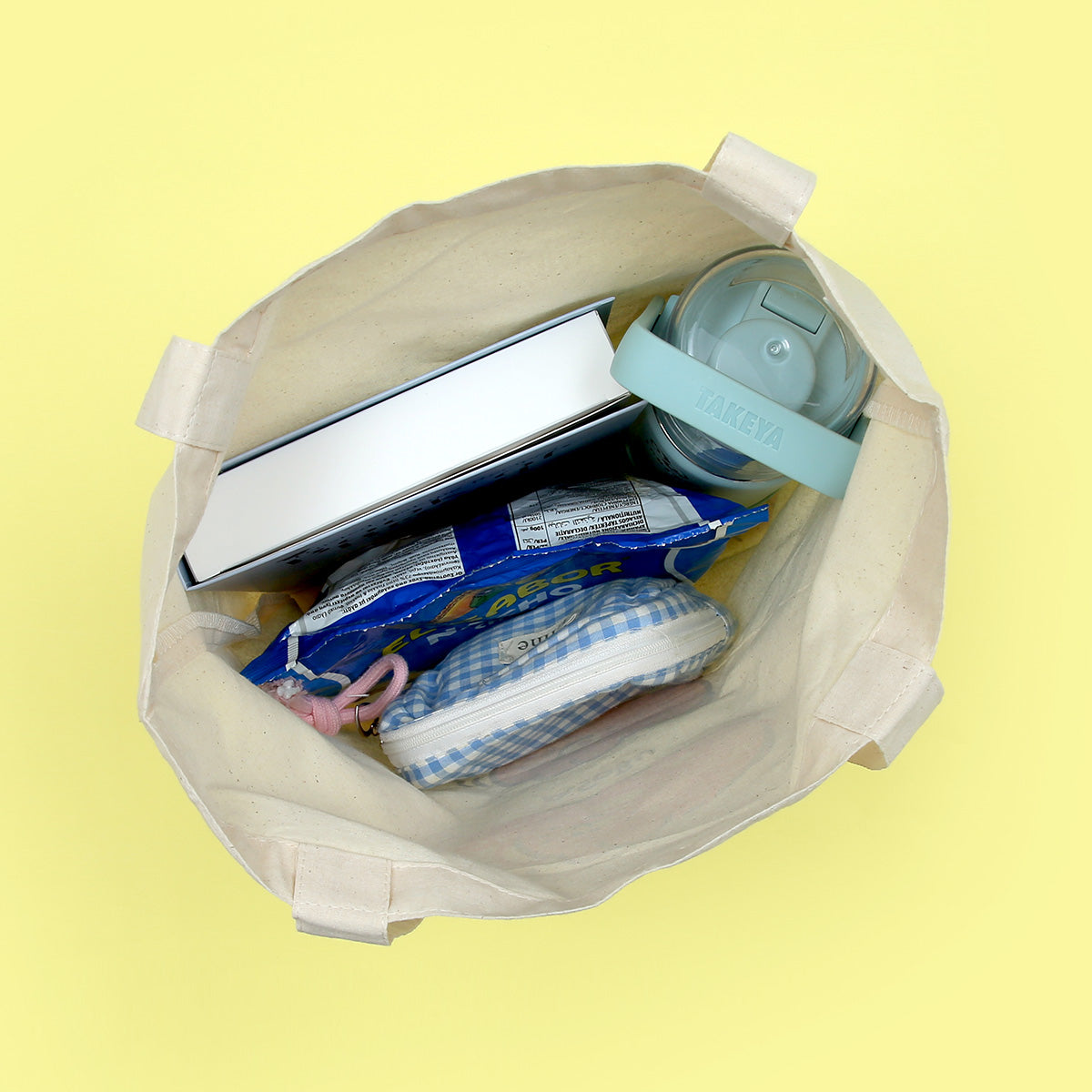 「あそぶ」「たべる」「ねる」を満喫するみかんねこがめじるしのトートバッグです。