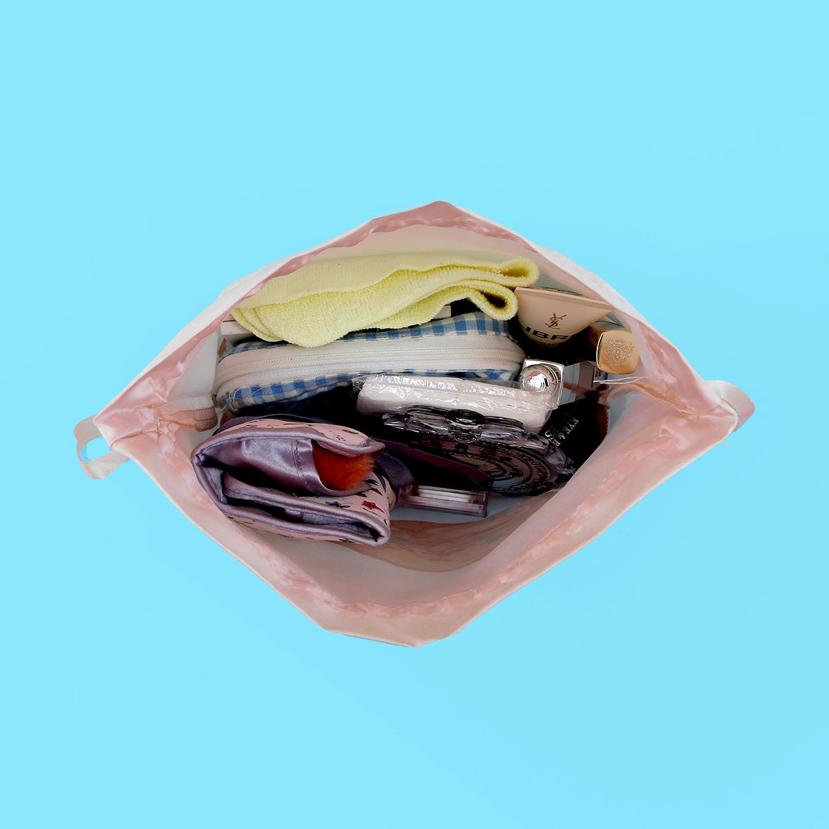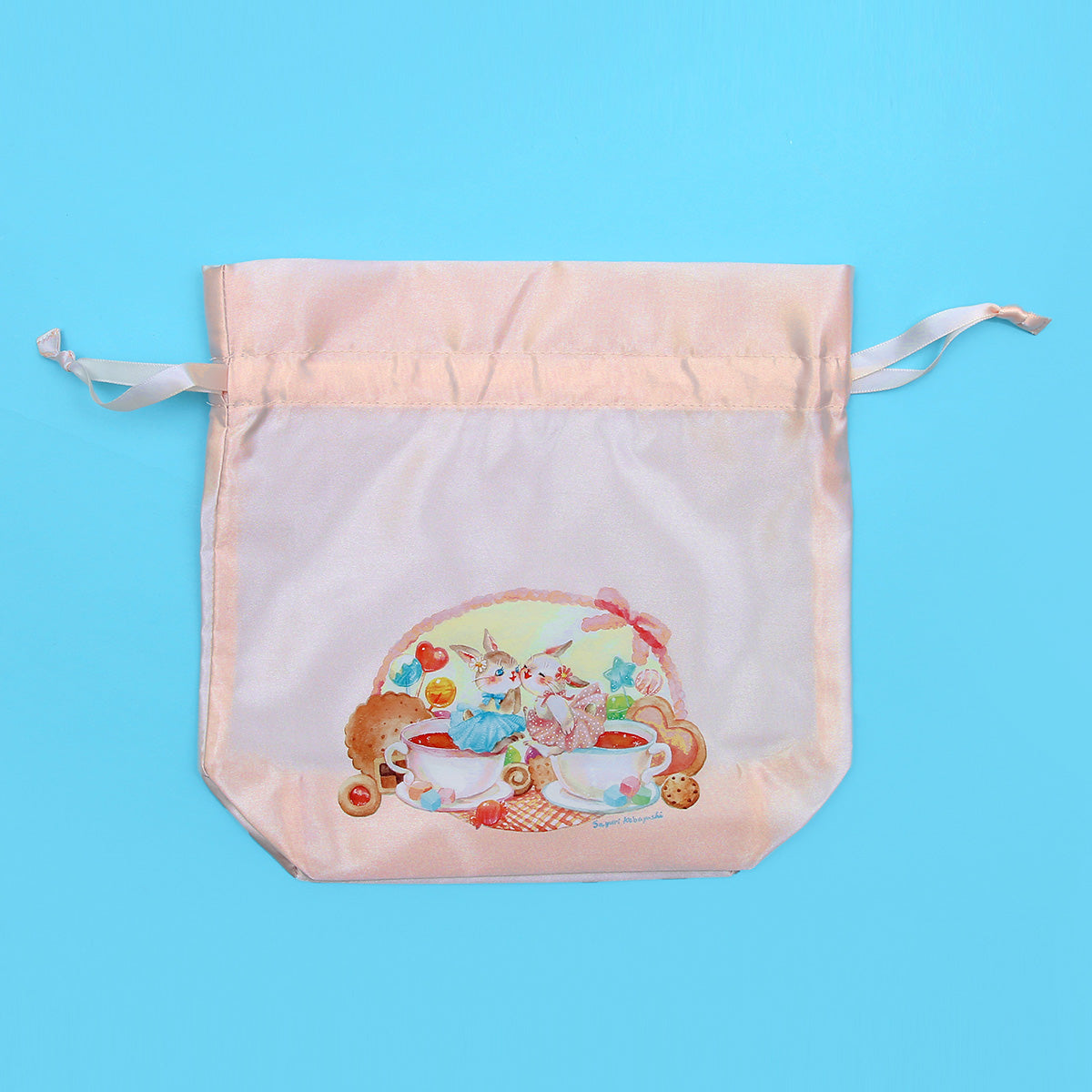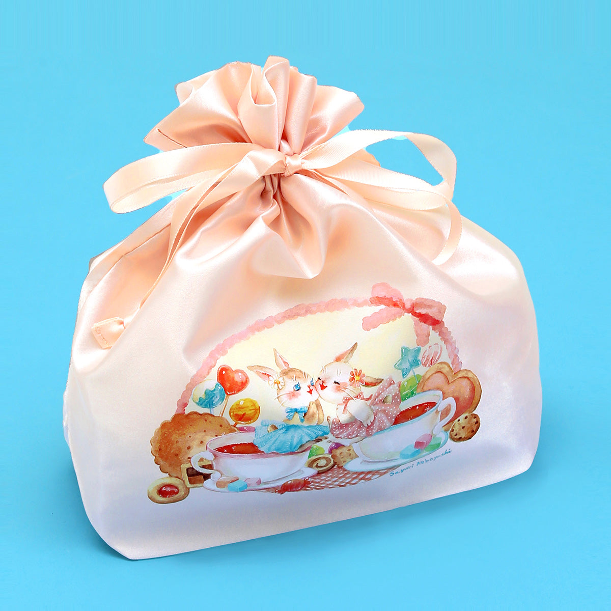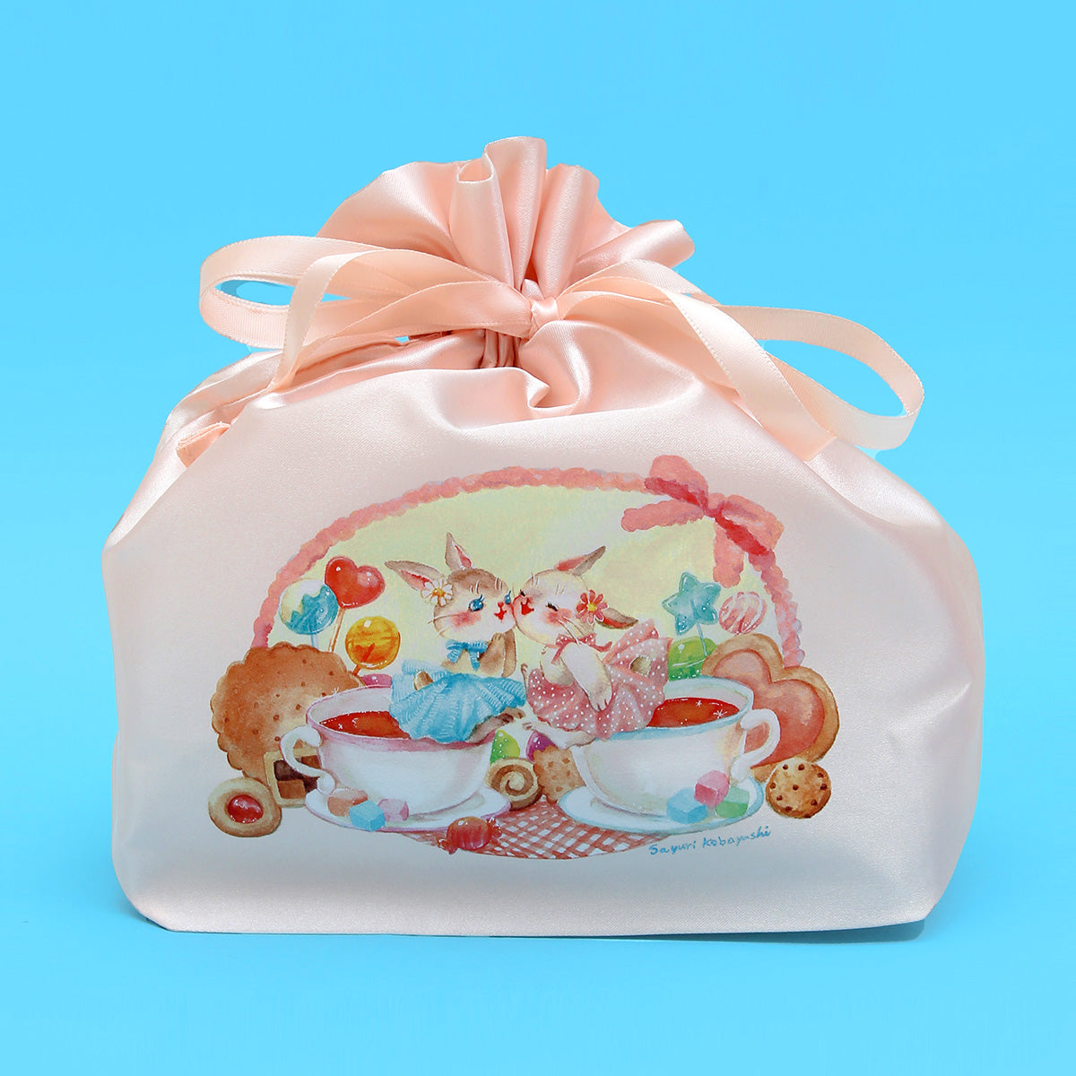 かわいいサテンが輝くマチありきんちゃくポーチです。