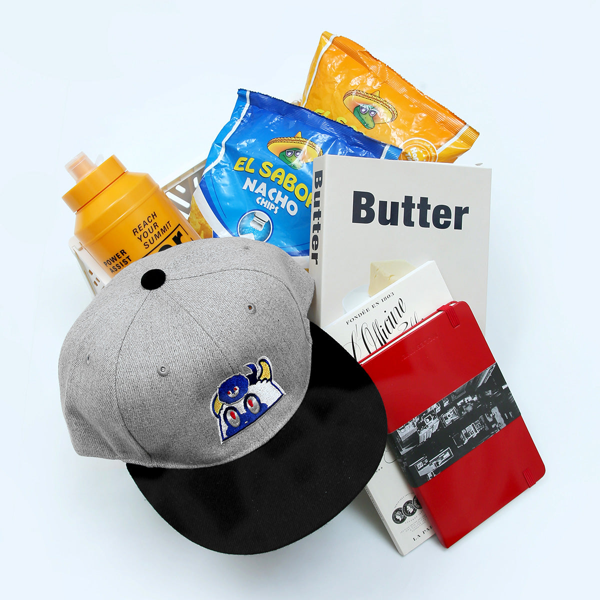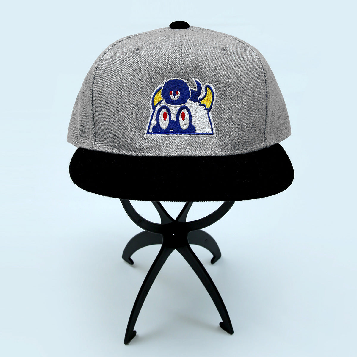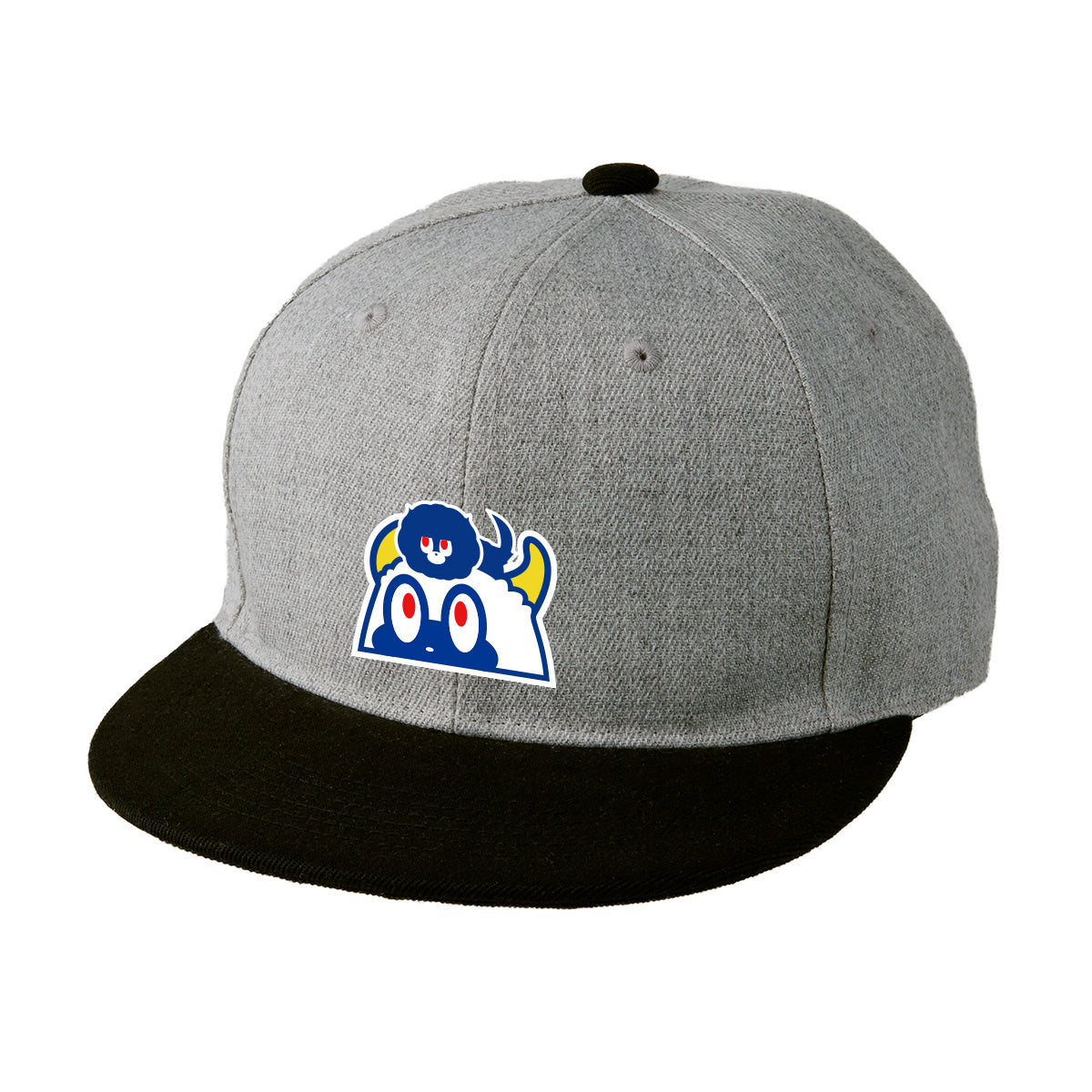 さりげなく、くまおにをデザインしたフラットバイザースナップバッグキャップです。