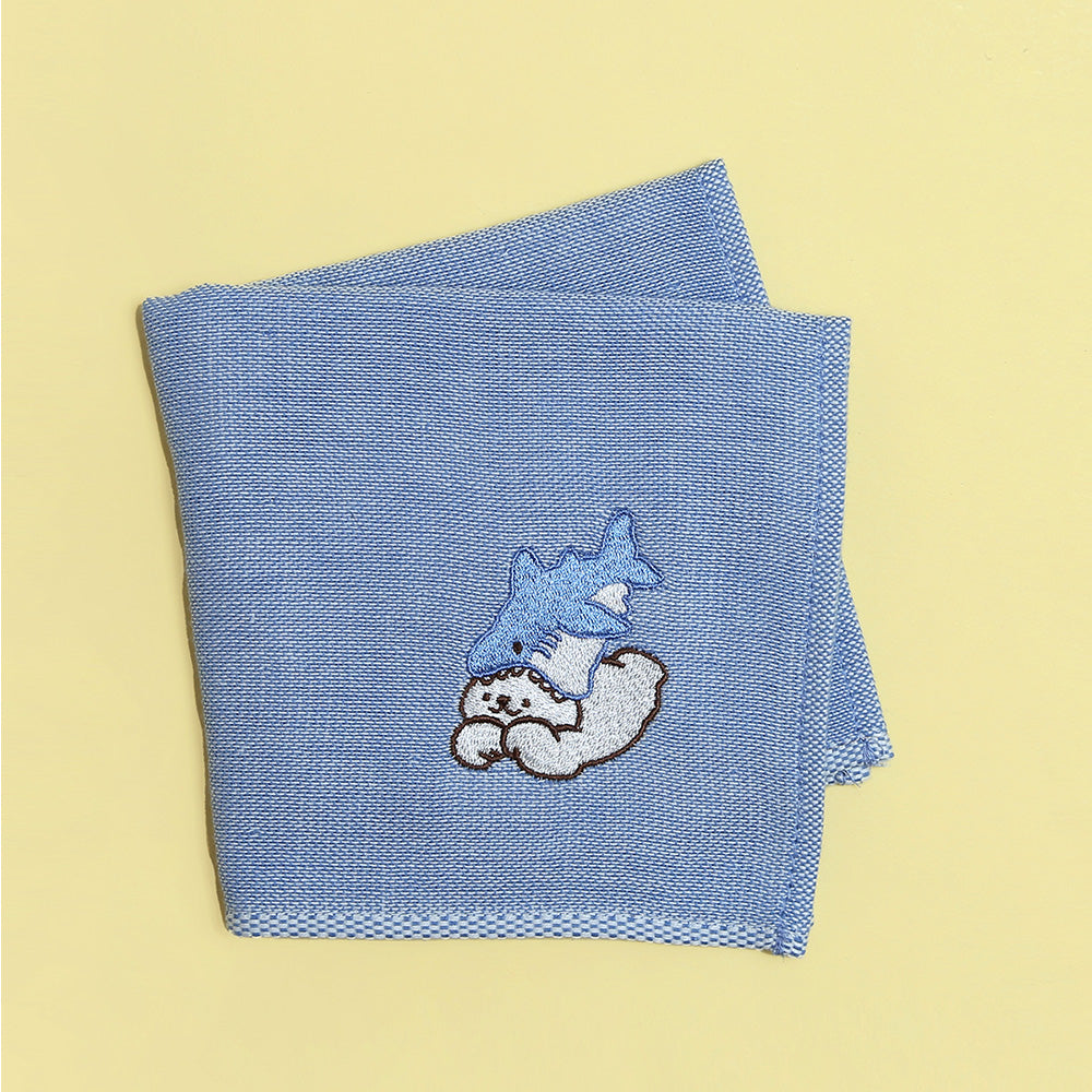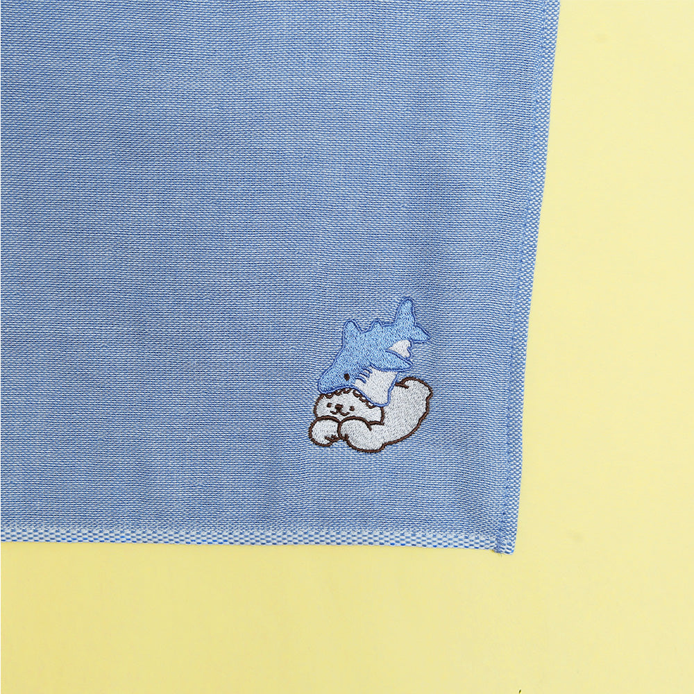 このくまおいしそう・・・と思ってかぶりついたサメと、特に何も気にしていないくまの、のんびりした感じのイラストをグッズにしました。