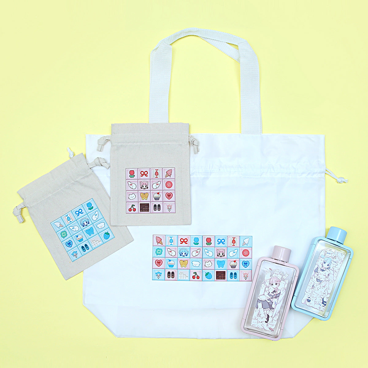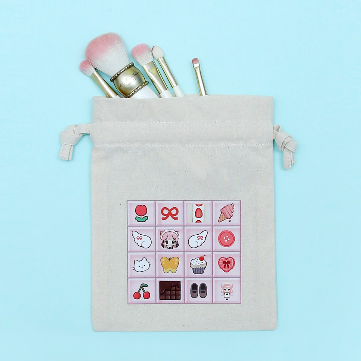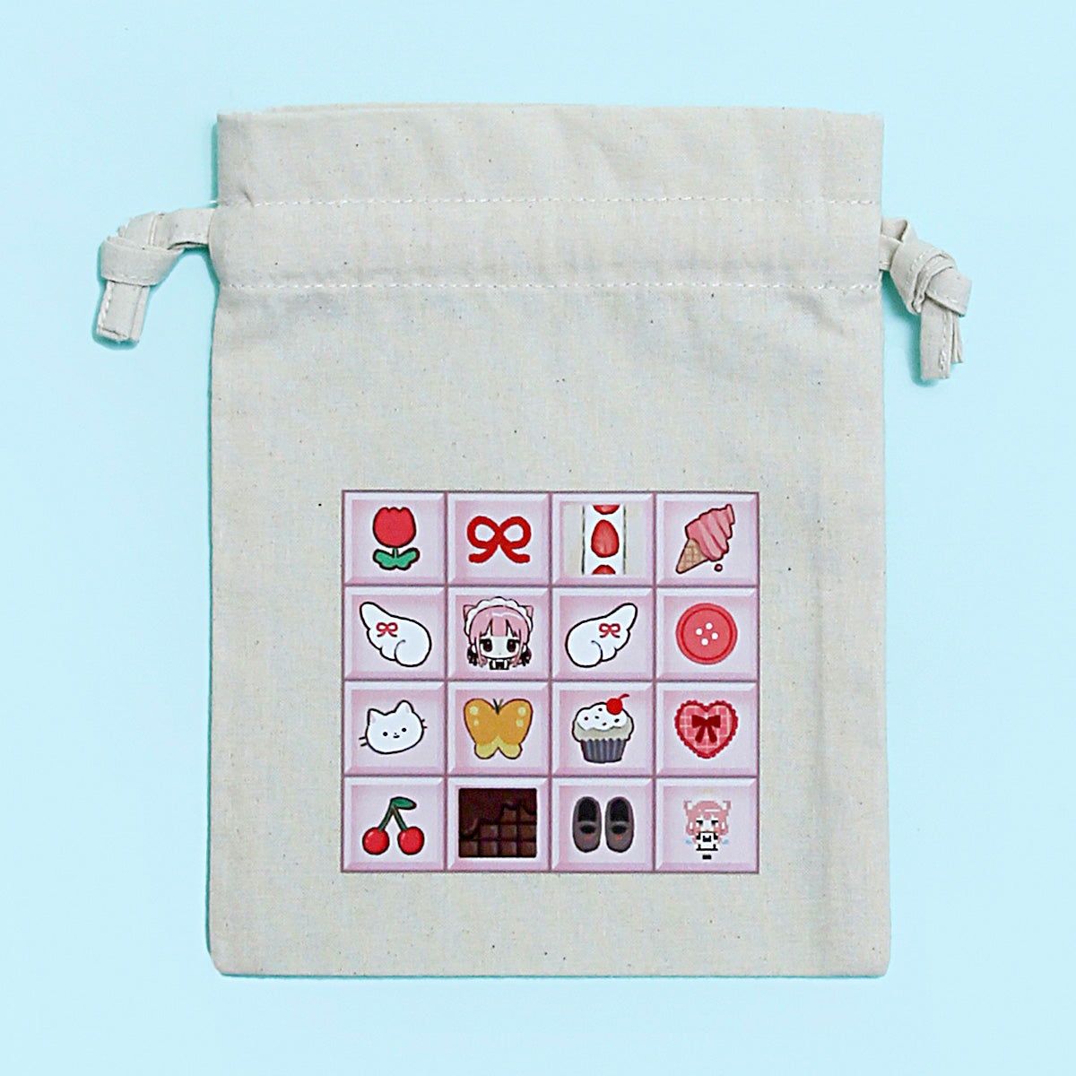 猫モチーフのタイル柄がかわいい、ふんわりピンクの巾着。ちょっとしたお出かけや収納に便利で、天使メイドの世界をさりげなくお出かけに。毎日使える、ふんわり可愛いデザインです。